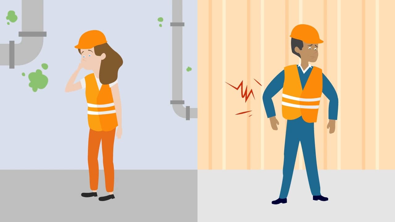 Bijvoorbeeld dat je last kunt krijgen van je longen, als je gevaarlijke stoffen inademt.